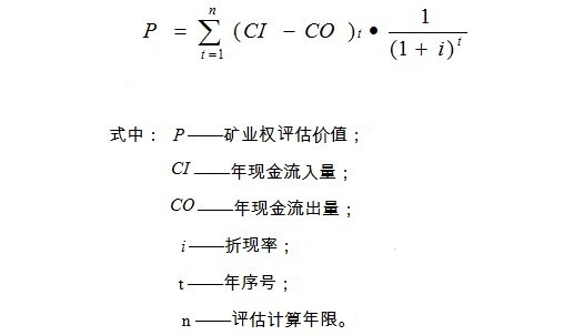 本次采矿权评估采用折现现金流量法进行评估。其计算公式为: